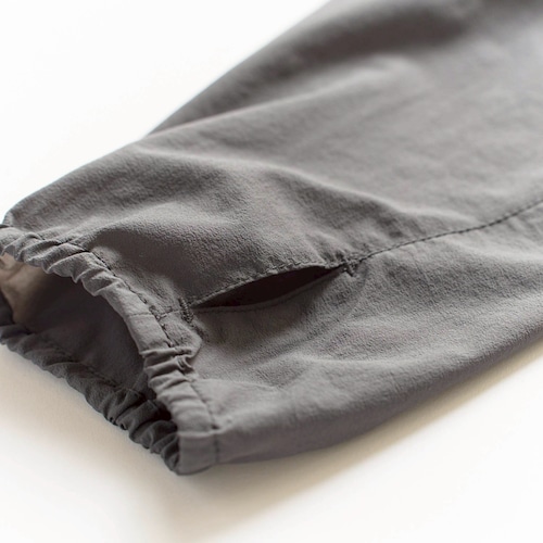 ストレッチするにも関わらずポリウレタンを使用していない為、濡れても重くならない。シボ加工によって汗や渡渉で濡れても肌に張り付きにくい生地の凹凸があります。