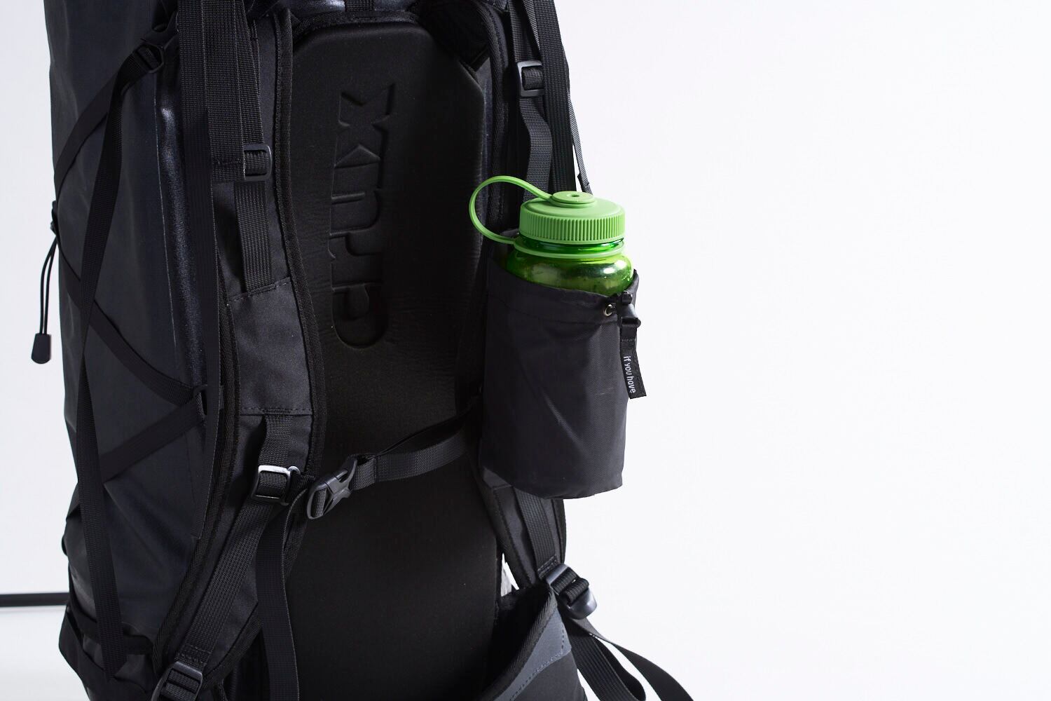 cruxのバックパックはショルダーベルト上に、余計なパーツが殆ど無い為、一般的なボトルホルダーなどが付けにくい形状をしています。サイドのにボトルホルダーも無いため、水分補給のためのボトルの処理には悩むところ。cruxに装着できる数少ないボトルホルダーの中で、『if you have』の商品をご紹介します。