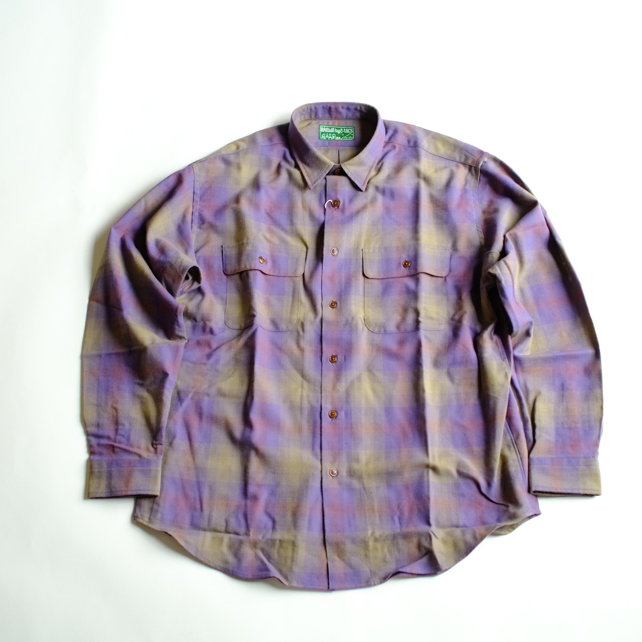 渋い色味が魅力のウールチェックシャツ。平織りで生地のヨレも少なく、ふわりと程よい温もりがオールシーズン使っていただけるスタンダードなシャツです。