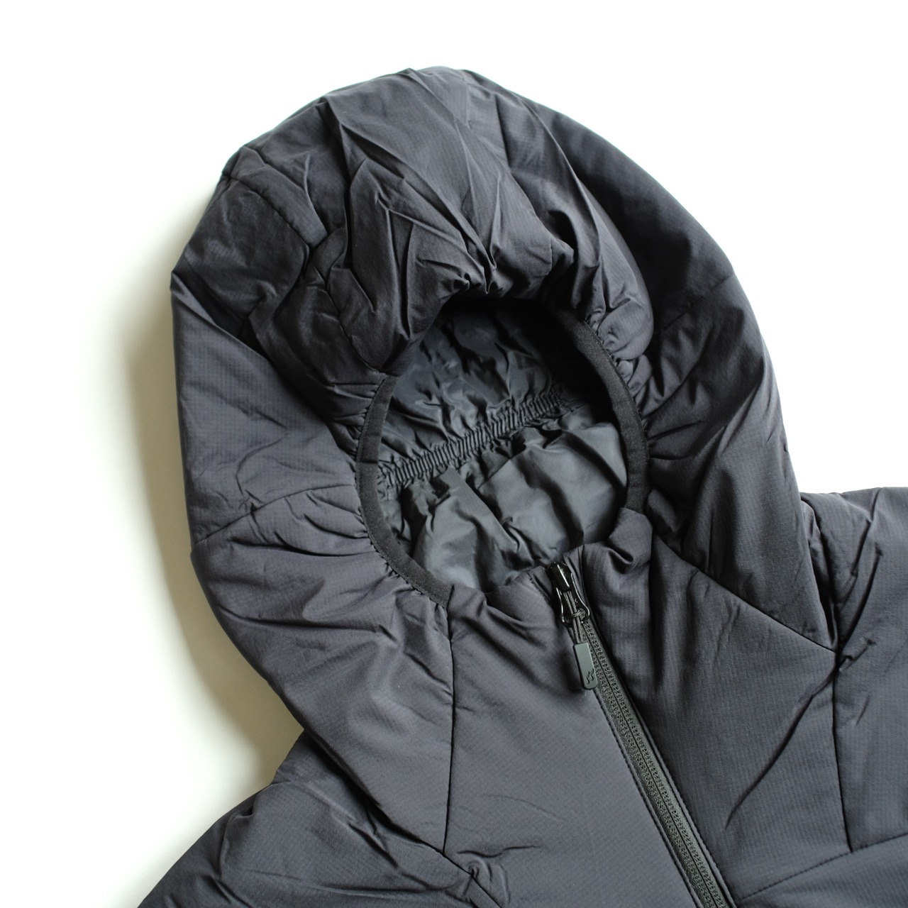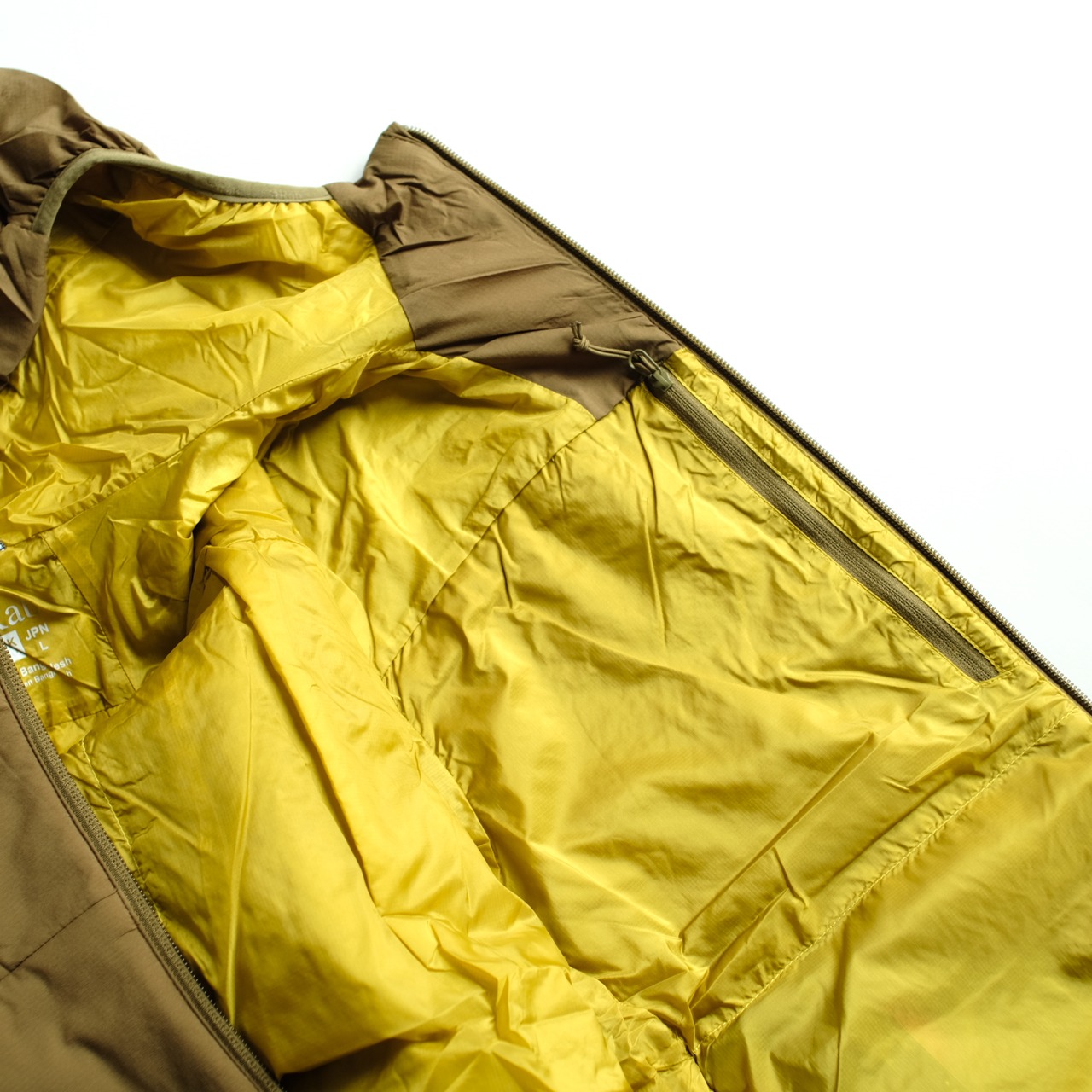 中綿には PrimaLoft® Gold Active+ を採用し、部位ごとに中綿量を変える「ボディマッピング構造」により、必要な箇所には十分な保温性を、発熱の多い箇所には通気性を確保。