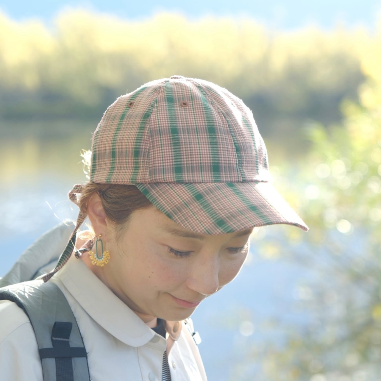 ベーシックなかたちに、チェック柄とリボンを施し、個性をもたせたハイキングキャップ。ややレトロな柔らかな雰囲気のチェック柄が、シンプルなコーディネートにも程よいアクセントになってくれます。