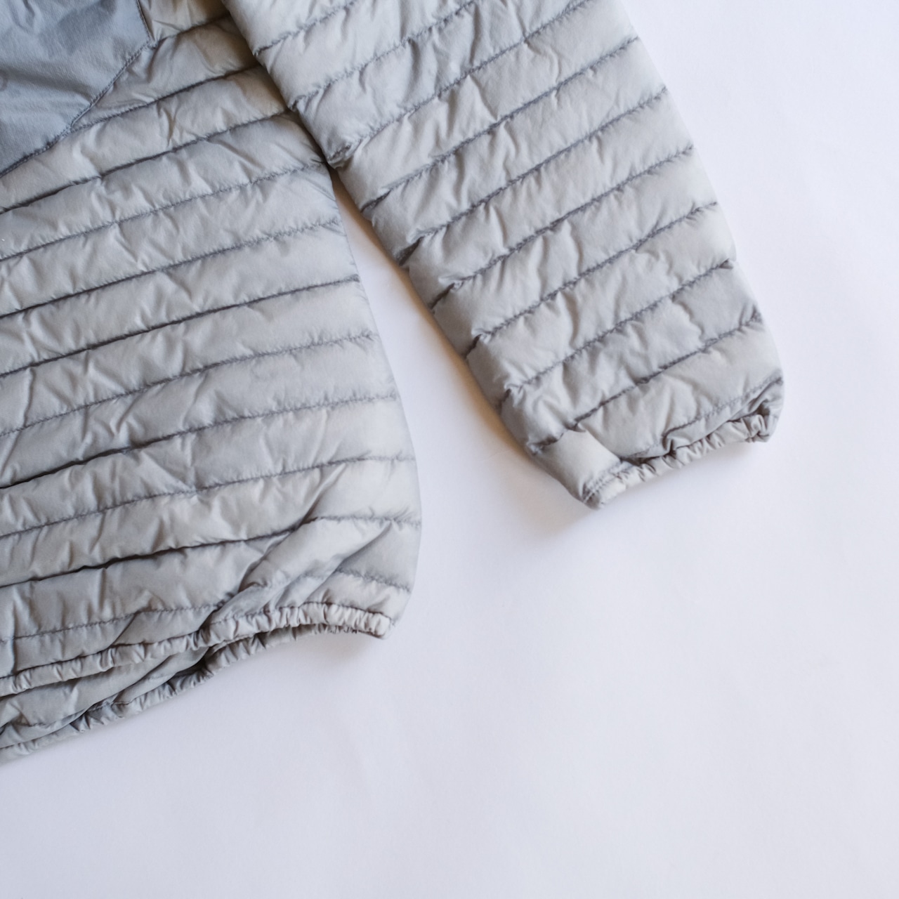プルオーバージャケットタイプを選ぶことで、軽量に、腹部は暖かく、一枚でもインナーとしても利用できるとても利便性に優れたジャケットです。サマーダウンと説明されているように、夏場は十分な保温性。冬季はインナーや街着として使えることを思うと一年中着続けられます。