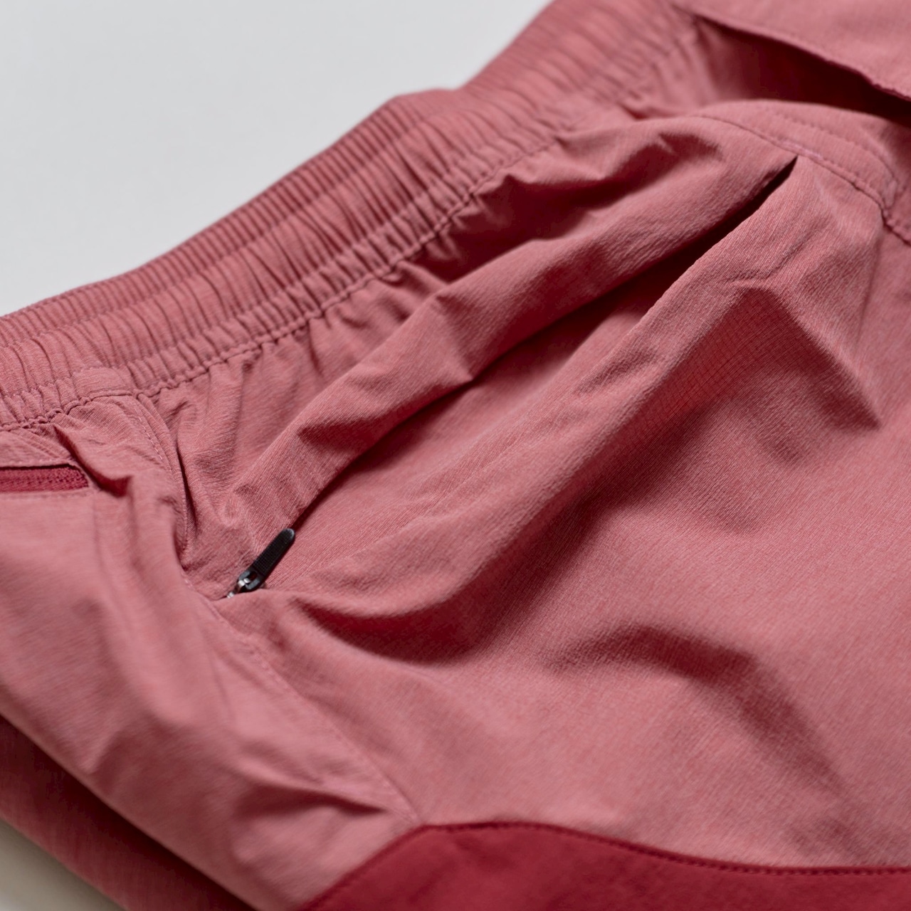 非常に速乾性に優れるため、渡渉などでドボンしても歩いているうちに直ぐに乾いてしまいます。岩稜帯などロングパンツに履き替えたいタイミングなどでは、バックパックの中でも軽量で嵩張りません。むしろ薄くストレスがないので、寒さ対策や藪漕ぎのタイミングではパンツを重ね着してもストレスなく行動することができます。